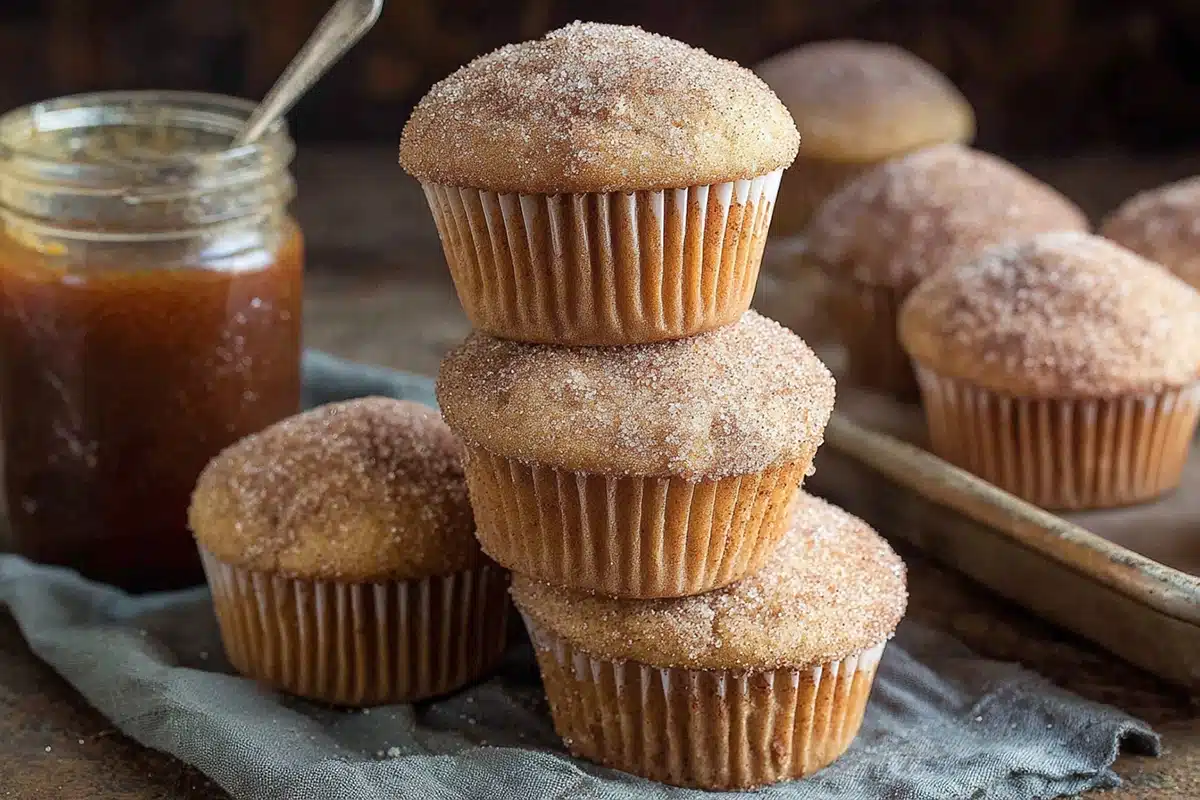 No apple pie spice on hand? Just mix cinnamon, nutmeg, and a pinch of ginger or cloves—DIY spice blend, no sweat. If you want firmer muffin tops (perfect for that cinnamon sugar coating), pop them back in the oven for a minute or two before dipping. It’ll help the butter-sugar coating cling like a charm.