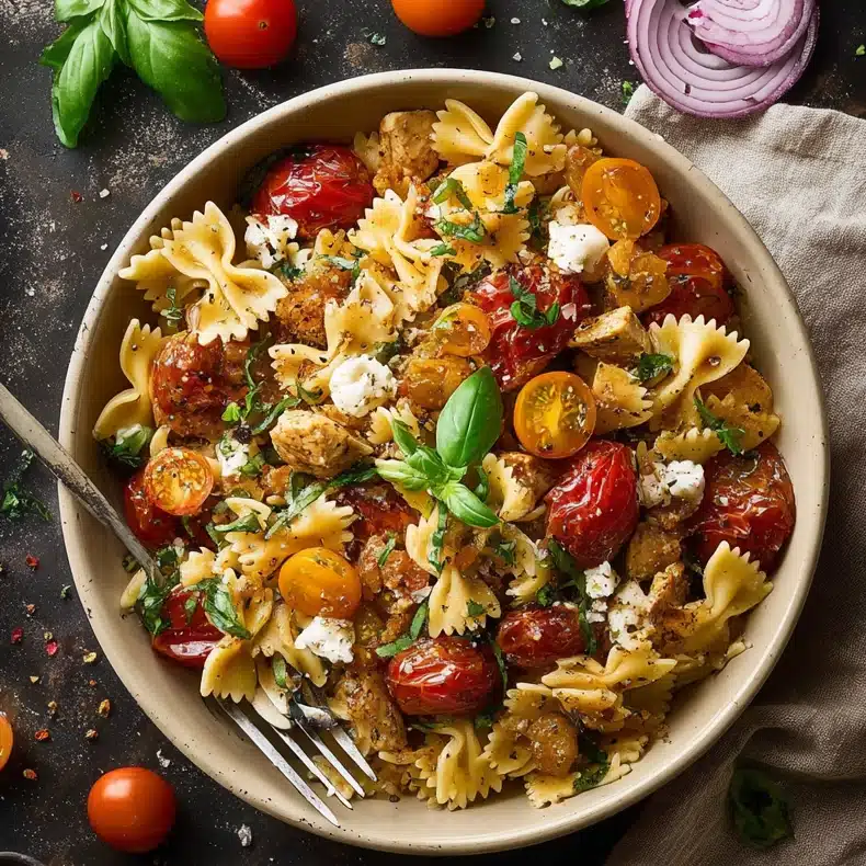 There’s something special about summer recipes that bring everyone together. For me, that dish is bruschetta pasta salad. I first made it one hot July evening when I had too many ripe cherry tomatoes sitting on my counter and a craving for something light yet satisfying. That first bite—juicy tomatoes, fragrant basil, and creamy mozzarella—took me straight back to the rustic cafés of Tuscany. It became a staple at every barbecue, potluck, and even lazy Sunday dinner.