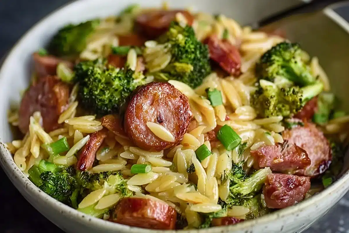 Chicken Sausage and Broccoli Orzo is a creamy, comforting one-pot pasta that combines savory chicken sausage, tender broccoli, and Parmesan-coated orzo. Ready in just 30 minutes, this dish is hearty, flavorful, and perfect for busy weeknights, meal prep, or casual entertaining.