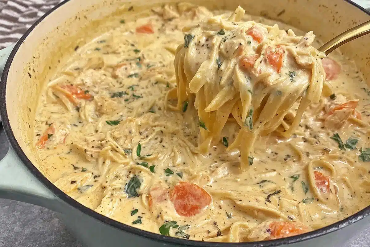 Make-ahead tip: You can prep the base (veggies, broth, shredded chicken) a day ahead and add cream/noodles right before serving for ultimate freshness.