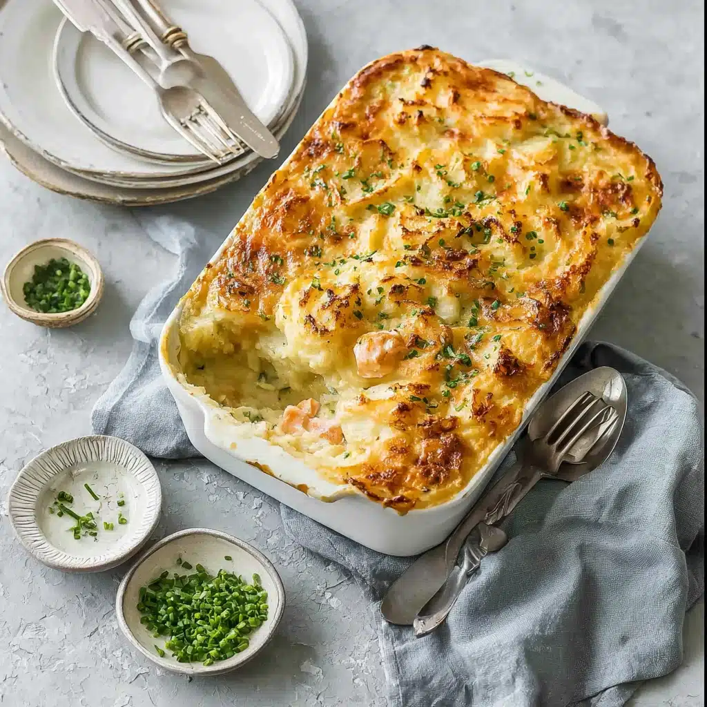 Serve this baked fish pie warm, sliced into wedges, and paired with a crisp green salad or steamed vegetables. It also works well with a light yogurt sauce or a spoon of sour cream on the side. This dish fits brunch tables just as easily as dinner plates.