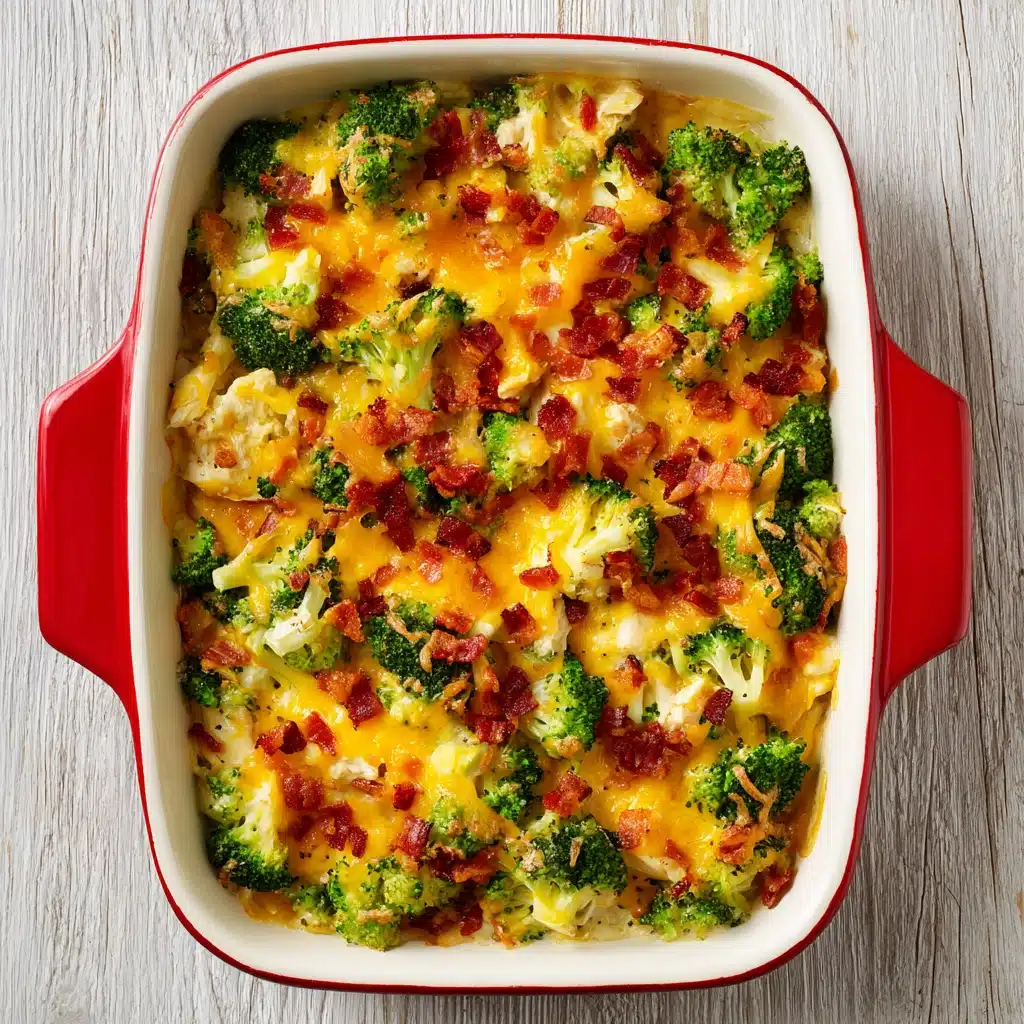 The most successful casserole recipes emphasize ease. This recipe follows that lead by keeping the steps straightforward. Preheat the oven for even heat, prepare broccoli to hold its texture, and chop bacon into bite-sized pieces. Combine chicken, bacon, garlic, cheeses, vegetables, and ranch dressing in one bowl. This technique mirrors that of highly ranked recipe sources, where simplicity encourages home cooks to try the dish. When everything mixes evenly, the casserole bakes into a uniform, creamy layer.