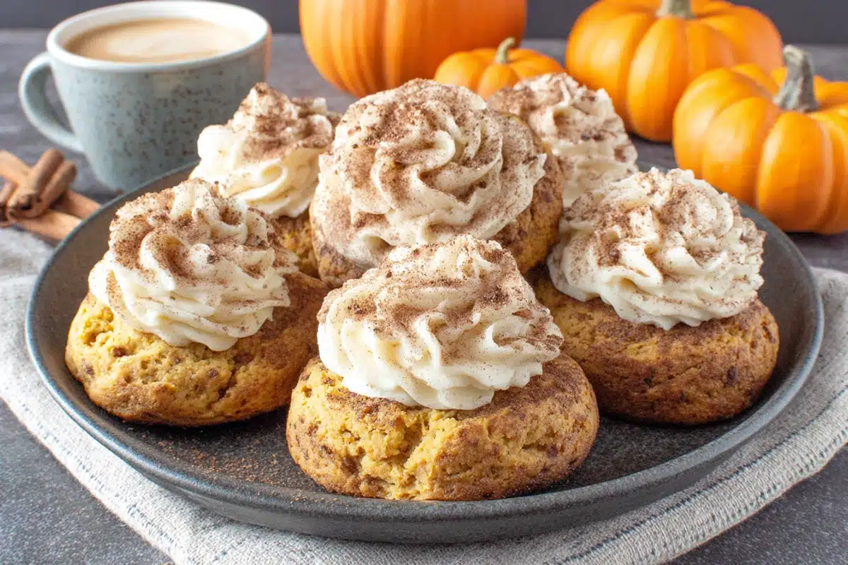 Frost the cooled cookies using a piping bag or spread with a spoon. Dust with extra pumpkin pie spice if desired.
