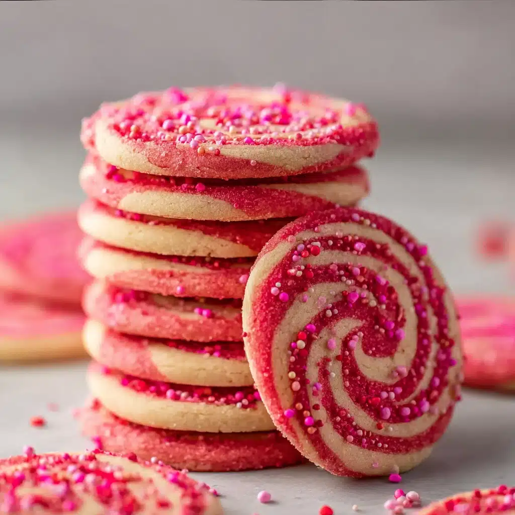 Valentine’s Day Swirl Cookies have always felt like a celebration cookie rather than an everyday bake. I first made these when I wanted something more polished than a drop cookie but still familiar in flavor. The swirl comes from layering two sheets of sugar cookie dough, then rolling them together into a pinwheel that slices cleanly and bakes evenly. Over time, this method proved reliable, even when switching colors or adding sprinkles for different holidays. These Valentine’s Day Swirl Cookies also solve a common problem in Valentine’s Day baking: how to make something festive without complicated decorating. Because the design is built into the dough, each cookie looks intentional straight from the oven.